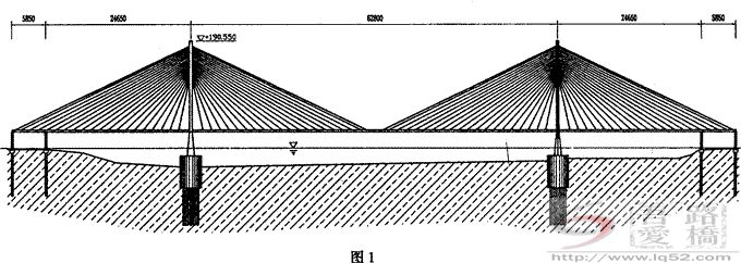 索塔位于长江通航主航道上,总高为195.55m(包括预抬量)。主塔由下塔柱、中塔柱、上塔柱及下横梁、中横梁、上横梁组成。外形为倒Y型空间结构。南京二桥主桥总体布置见图1。