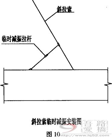 在钢箱梁的悬拼过程中,斜拉索的风振非常明显,直接影响箱梁悬拼时的控制,因此,施工过程中,在斜拉索下端设置临时减振装置。此方法简单有效,见图10。