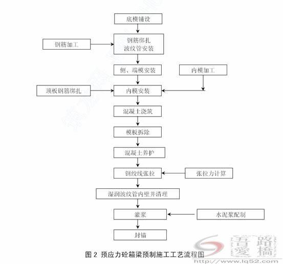 图2 为箱梁预制的施工工艺流程图,如下将从主要施工工艺作一讨论。