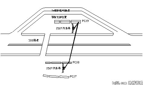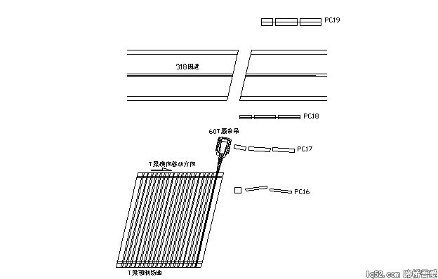 在PC19#墩北侧(318国道北侧桥墩)修筑一条7m宽的临时便道,吊装时供来住车辆通行,见下附图: