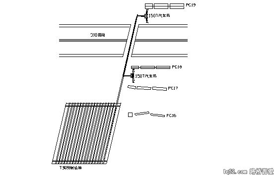 (4)T梁的吊装:采用两台150T汽车吊双机抬吊至架设位置: