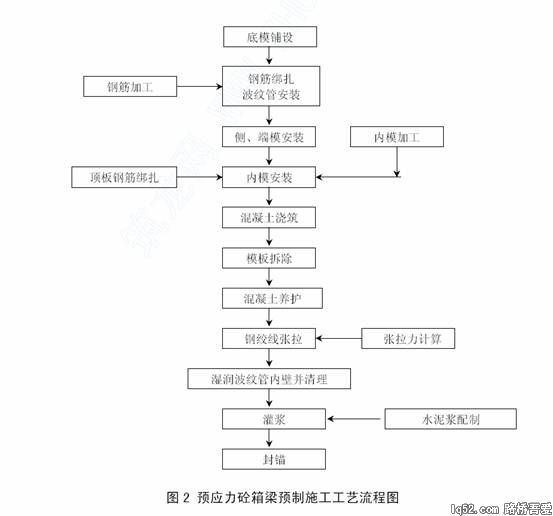 图2 为箱梁预制的施工工艺流程图,如下将从主要施工工艺作一讨论。