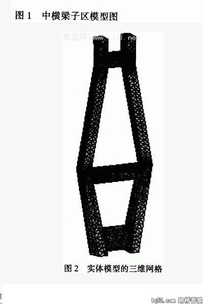 对鄂黄公路长江大桥斜拉桥主塔塔梁固结点进行了实体建模,分析了几种最不利荷载组合工况下,中、下横梁塔梁固结处局部应力分布规律。计算中采用提取子区模型的方法来保证模型计算的方法。中横梁子区模型图及主塔计算模型图见图1、图2。