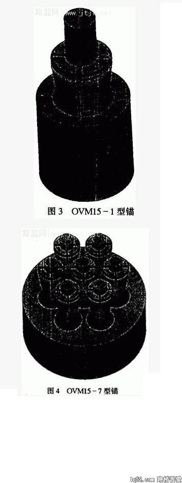 通过建立OVM15-l,15-7型锚具的实际模型,模拟整个预应力束的张拉过程,其夹片及锚板的计算模型见图3、图4。